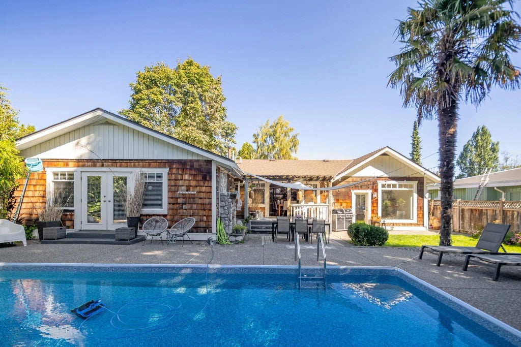 Exceptionally renovated 2,278 sq.ft. 4 bedroom rancher situated on an almost 9,000 sq.ft. flat, private south lot with almost 2,400 sq.ft. of additional outdoor patios/decks. This exquisite home has an entertainer's delight floorplan; the kitchen with white shaker style cabinets, is located at the front and overlooks the living room with a stately fireplace and skylights flooding the home with natural light. The sunken family room offers French doors leading to the patio. The bedrooms are quietly situated in the 'west wing' of this home. Stunning oak & slate floors throughout and so much more! A true Tsawwassen classic!
