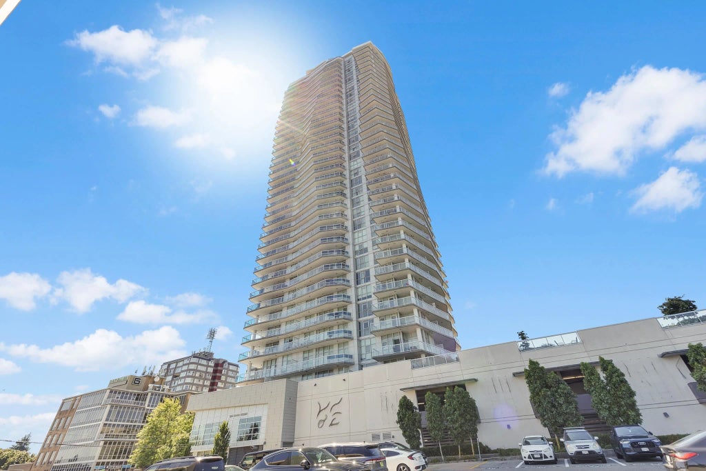 2 BEDS, 2 BATHS + DEN!! Stunning Views of North Shore Mountains and SUNSETS from your private covered balcony perfect for BBQing all year round. Solid concrete construction w/sound and heat insulation, natural sunlight in all rooms w/floor to ceiling windows. Open Concept living w/8'6" ceilings incl. a wall mounted Electric Fireplace, top-of-the-line SS Kitchen-Aid Appliances, Quartz countertops & laminate floors throughout plus unit recently painted. Den at entrance & LARGE dining area to fit a table of 8. King Size Bedroom w/DELUXE 4 pce. ensuite & Walk in Closet. 2nd bedroom is queen size w/built-in closet & bathroom opposite. Amenities: gym, work spaces, entertainment room for parties w/games & media room. BONUS 2 Side by Side PARKING STALLS, Sunday-27 July-2-4 PM open House.