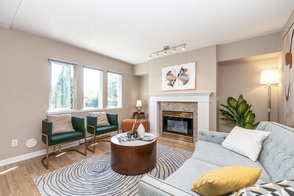 This charming 2-level, 2 bedroom, 1.5 bath townhome offers a perfect blend of comfort and function. Nestled on the top floor of a fully rainscreened building, it welcomes you with natural light, a warm gas fireplace in the living room, two spacious bedrooms, in-suite laundry, and two private sundecks-ideal for morning coffee or quiet evenings. The hot water tank was just replaced in 2025, giving you peace of mind. With a thoughtful layout, two side-by-side parking spots, and a large storage locker, this home is as practical as it is inviting. You'll love the unbeatable location-just minutes to SkyTrain, Superstore, T&T, IKEA, community centre, parks, and schools, with quick access to Hwy 1 & 7. The building roof was replaced in 2024. Open House Saturday (September 27) 1-3pm.