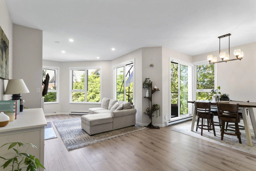 TOP FLOOR at Westport! This bright and spacious 2 bed, 1 bath home offers 1,089 sq ft of open living with 9ft ceilings, updated flooring, modern paint, a renovated kitchen with stainless steel appliances, and a cozy gas fireplace. Large primary bedroom with walk-in closet and dual access ensuite Enjoy peace of mind in one of New West's best buildings! This property has New windows, New siding, New balconies, New roof, and a New rainscreen! Includes 1 parking and a private storage room right outside your door. Steps to the Quay boardwalk, River Market, SkyTrain, shops, and more. Pet friendly!