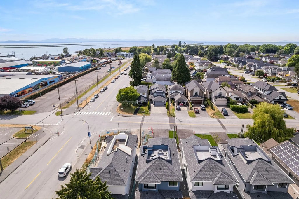 Discover modern living combined with exceptional craftsmanship in this stunning new single-family home by Penta Builders Group. This is one of 4 family homes being built on the corner of Chatham & 4th Avenue, move-in ready this summer! Spanning 2,152 sq ft it features 5 bedrooms and 4 full bathrooms, including one bed and full bath on the ground floor, providing functional space for families to thrive. Enjoy EV-ready 2-car garages, spacious private yards, and inviting rooftop decks boasting water and mountain views. Prime central location in the heart of Steveston Village. Built by Penta Builders, a renowned local builder with decades of experience delivering exceptional quality and craftsmanship. *Photos and open's are showhome 11986 (same floorplan).