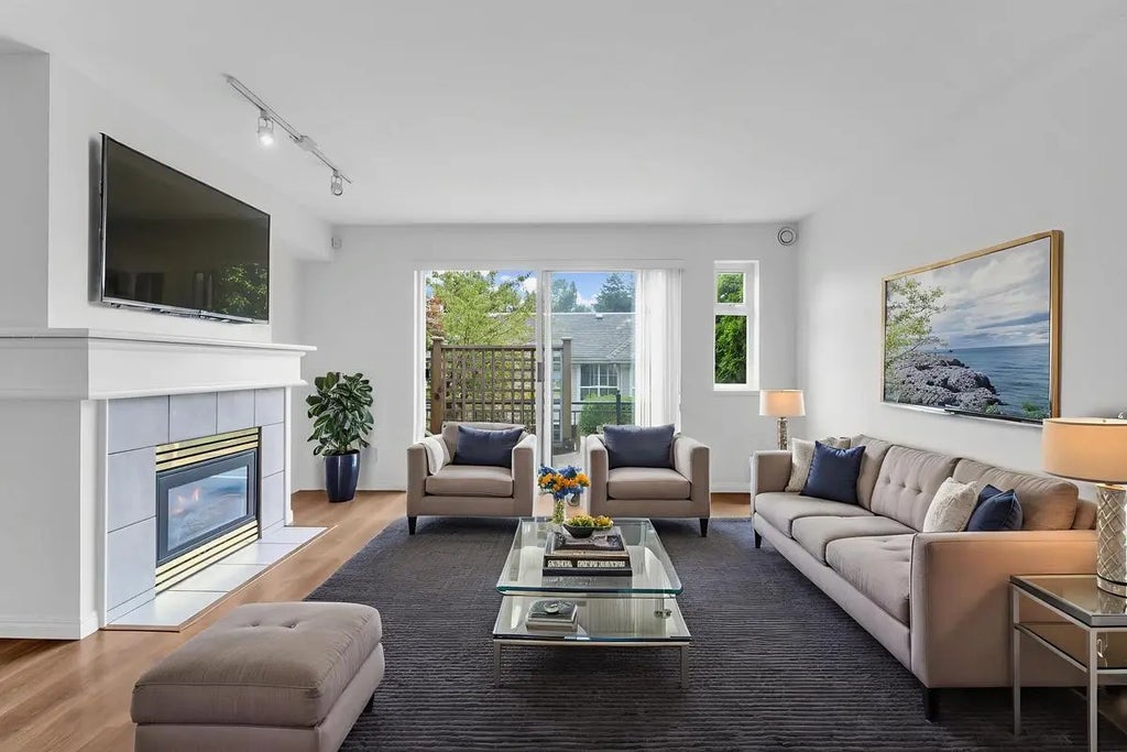 Bright and spacious 1-bedroom townhome with its own private south-facing patio—perfect for relaxing or enjoying time with pets. Freshly painted and move-in ready, this is an ideal choice for first-time buyers or investors. Features a generous open layout, updated finishes, and great natural light. Includes 1 parking and 1 storage locker. Pet-friendly and located in a prime walkable area—just steps to shops, restaurants, Starbucks, Winners, a movie theatre, and fitness clubs. Quick and easy access to Highway 1 for commuters. Great value in a fantastic location! some photos are virtually staged.