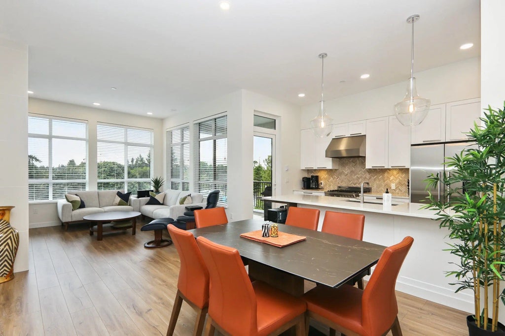Experience luxury living in this top-floor corner penthouse featuring 2 bedrooms, 2 bathrooms, and 1122 sq ft of bright, open space. Soaring 10 ft ceilings and air conditioning create a comfortable, elegant atmosphere. The living room includes a custom built-in TV cabinet, gas fireplace, and stylish finishes. A gourmet kitchen showcases high-end stainless steel appliances, quartz countertops, and a built-in wine rack. The primary ensuite offers an oversized shower, and both bathrooms feature heated floors. Recent updates include waterproof laminate plank flooring and fresh paint (2023). Enjoy a covered NW-facing deck with gas hookup and water bib. Includes 2 parking spots and a secure storage unit with metal roll-down door.