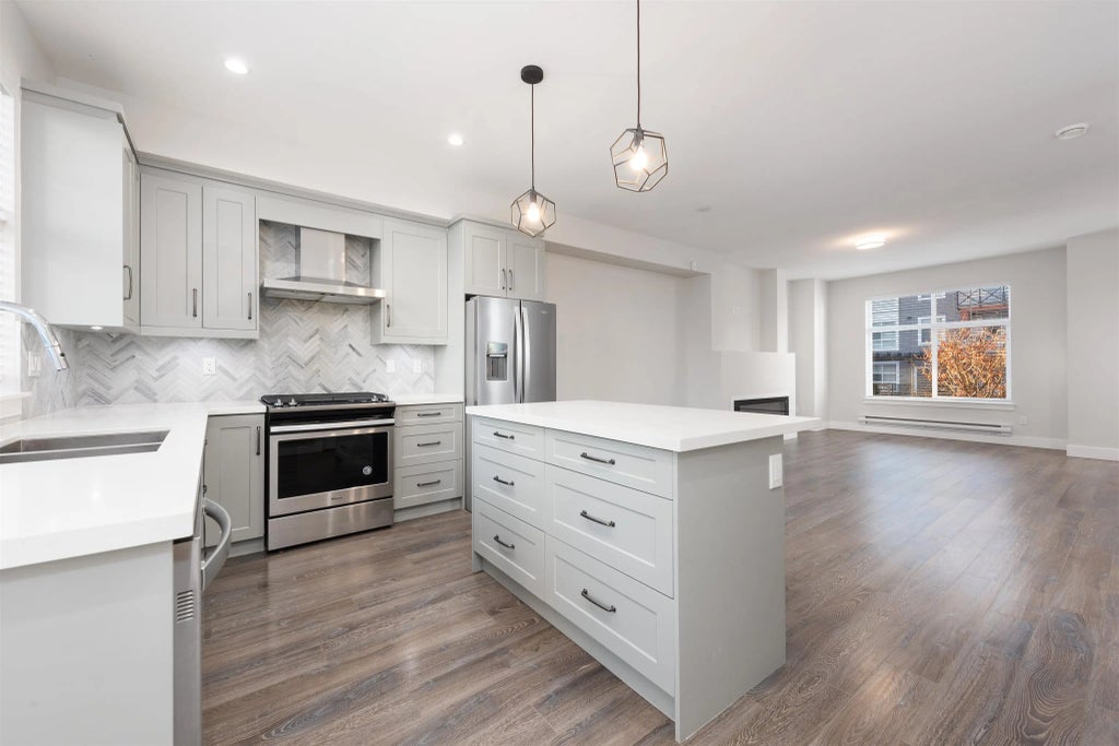 Welcome to River and Pine, a tranquil neighborhood tucked alongside the Nicomekl River in Sunny South Surrey. This spacious corner 3 bed 2.5 bath townhome is an end unit w/double side by side garage and an airy interior filled with natural sunlight. Featuring a Chef's inspired kitchens with stainless steel Samsung appliances including gas stove, quartz counter tops throughout, wide plank laminate flooring, oversized windows & vaulted ceilings in the primary bedroom. Quiet neighbourhood next to the future 80 acres Nicomekl Riverfront Park but still centrally located and only a few minutes drive from shopping, groceries, schools, restaurants, and coffee shops. With highways 10, 91, 99, and the US Border nearby, commuting is a breeze. Your serene retreat awaits, Call now to make it yours!