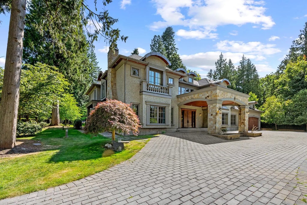 Exclusive custom home in Elgin’s luxury estate community, tucked in a quiet cul-de-sac. Elegant foyer and grand staircase lead to spacious living/dining areas with a built-in bar. Gourmet kitchen with Viking and Sub-Zero appliances, plus wok/spice kitchen. Sunlit conservatory and family room enjoy year-round garden views. Features 5 bedrooms (including en suite) and 7 bathrooms, with a stunning primary suite that opens to a large private deck. Total living space of 7,539 sq ft, with A/C, triple garage, koi pond, and gated entry on 0.92 acres. Outdoor covered patio with fireplace. Private, secure, perfect for entertaining. 5 minutes to Highway 99, directly to the US border, the airport and Vancouver.