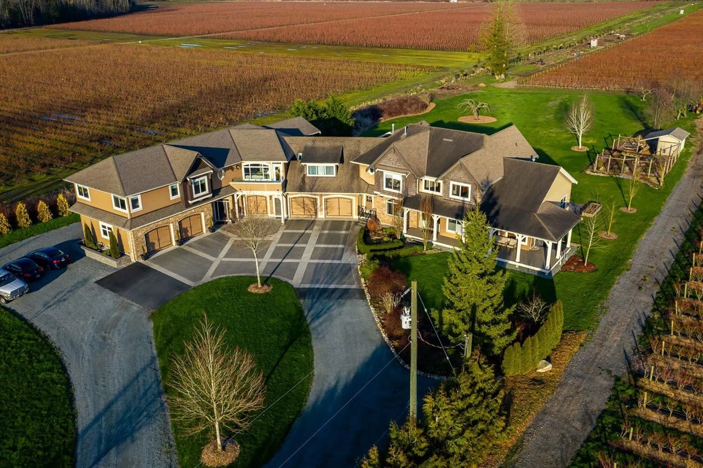Stunning custom-built 2-storey home on 3 acres with +/- 8,170 sq. ft. of living space, including a luxury Coach Home suite! The main home features 5 spacious bedrooms (2 with en suites), formal living/dining, a chef’s kitchen with granite island, a walk-in pantry, and built-ins, plus a family room with double-sided fireplace. Rich finishes include coffered ceilings, crown moulding, and tile/hemlock flooring. The Coach Home suite (2014) features a private entrance with an elevator, two en-suite bedrooms, a gourmet kitchen, dual fireplace, a covered deck with a BBQ hookup, and in-suite laundry. Large main floor office/shop space, perfect for your home-based business. This is an ideal set-up for extended family or guests. A rare opportunity!