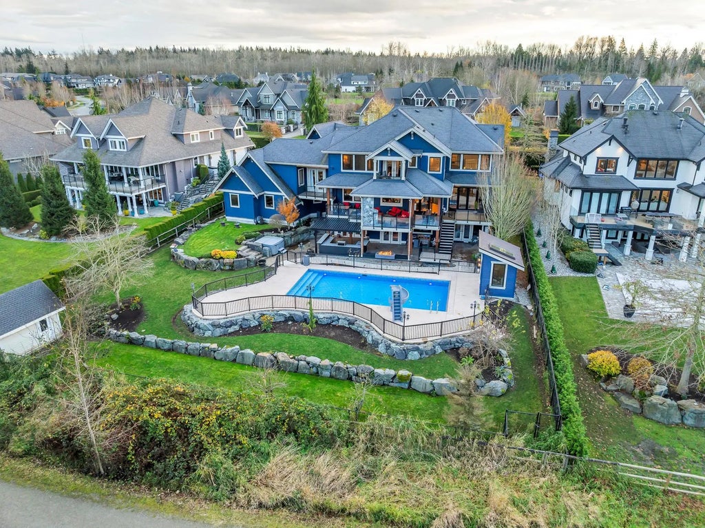 Custom-built 6 bed, 8 bath, 7,395 sqft, High Point Home! Chef's kitchen enjoys high-end SS appliances, large island + coffee bar. Double accordion doors slide open from great room & kitchen to the upper covered balcony w gas fp. 4 beds up including primary with it's own gas fp sitting area, spa style ensuite, walk-in closet and private balcony w valley + mountain views. Great recroom, 2 open office spaces, + gym above 3rd and 4th garage. Walk-out basement w large rec room with wet bar, theatre room + beautifully finished 2 bed unauthorized suite. $500k invested into the dream backyard with 20' x 40' pool, custom outdoor kitchen w Napoleon grill, dual refrigerators, premiere metal awning system, Dreamcast FP, rock wall, lighting + irrigation! New instant HW boiler + Geothermal heating!
