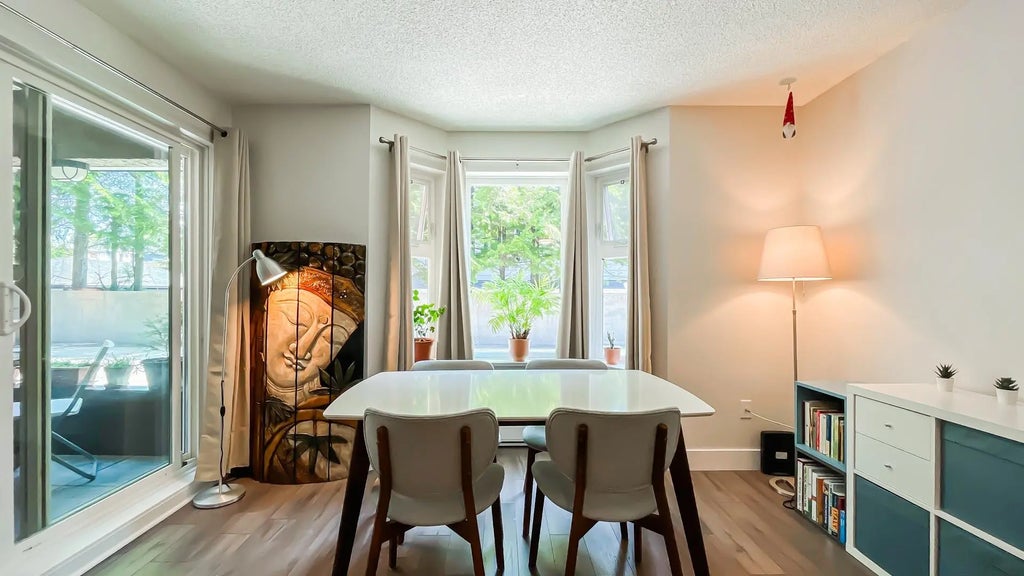 Welcome to Fraser Gardens, a well-maintained BOSA building offering a fantastic opportunity for homeownership. This above ground 1 bed and 1 bath unit with a large private patio is located on the quiet side of the building, providing a peaceful retreat in a vibrant neighbourhood. Step inside to a fully renovated home featuring laminate and tile flooring throughout. The open concept living and dining area provides a comfortable space for relaxing and entertaining. This home is in a proactive strata with significant updates, including full rainscreen, new windows, and a new roof completed in 2010. 1 secure underground parking stall included. Pets allowed! This turn key property is the perfect starter home or a great option for those looking to downsize. Open House: Saturday Oct, 11th 2-4pm.