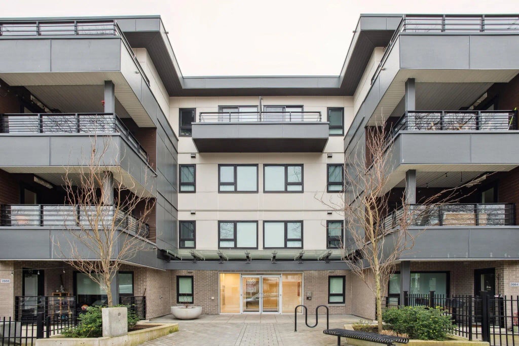 Welcome to this central location, bright, high ceiling & modern 2-bd, 2-ba corner home with a den fantastic for home office & balcony. Located on a quiet tree-lined street. Offering you an attainable opportunity either grow your family or for investment in the heart of Vancouver’s newest master-planned community, thoughtfully designed living space, this home includes sleek S/S Blomberg appliances, quartz countertops, an open-concept layout that maximizes functionality. Feature engineered hardwood, tile & carpet in bedrooms. HRV system, Enjoy the convenience of 1 parking & 1 storage, pet and rental-friendly policies & a guest suite in the building that you can rent at $25/night. Walking distance to 29th Ave SkyTrain, Slocan Park, & T&T.