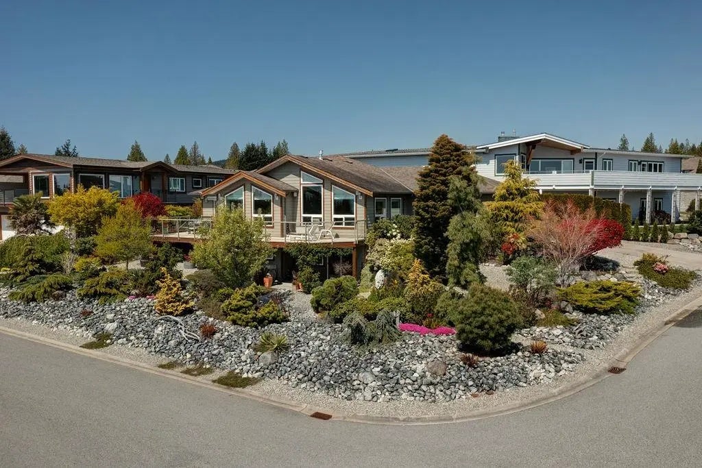 Enjoy spectacular VIEWS over the Georgia Strait and to Vancouver Island from this bright executive main floor entry home. Featuring vaulted ceilings that canopy the open floor plan. Cozy up to the impressive floor to ceiling slate lined gas fireplace in the living room. Custom kitchen is sure to impress with skylights, large island, gas stove, wall oven and pantry pull outs. Dining area leads to a sunny southwest facing sun deck overlooking established perennial and rock garden beds. Generous walk out basement is completely finished a large recreation room, which also leads onto a private patio and into the gardens. Very popular location for all age demographics close to neighbourhood store, West Sechelt elementary & high school. 5 zone sprinkler & drip watering system.