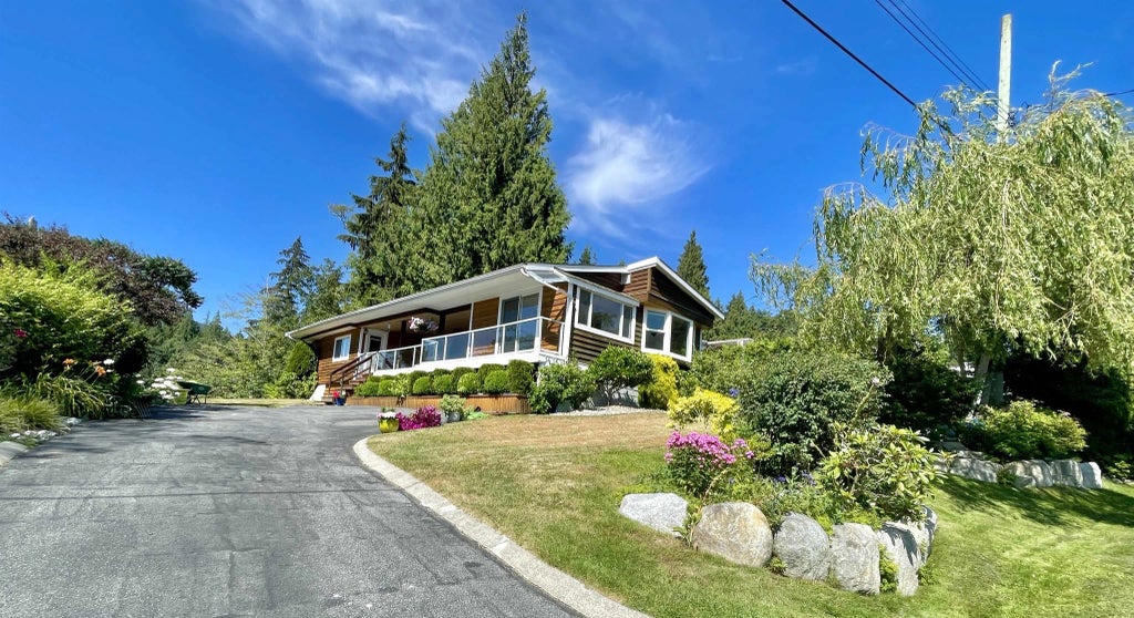 Charming 1080 sq ft view home in Cedar Grove neighborhood, boasting a spacious .44 acre lot. Just steps from the elementary school and a short walk to Bonniebrook beach. Conveniently located 5 minutes from upper or lower Gibsons and 8 minutes to Langdale ferry terminal. The large covered deck provides stunning ocean, island, and mountain views year-round. Meticulously landscaped grounds with manicured lawns. Ideal for downsizers, first-time buyers, or as a holiday retreat. This 3 bed, 1 bath home offers a cozy sanctuary with easy access to nature and amenities.