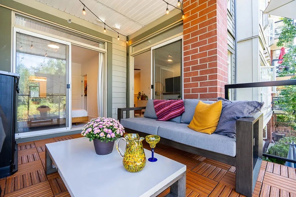 "Suter Brook" in the heart of central Port Moody is the perfect blend of nature & modern living. Surrounded by forest greenbelts & nature trails, this 2-bdrm + den apt offers flex space for an office or hobby room. Oversized windows & 9-foot ceilings provide abundant natural light. The 120 sq ft covered balcony offers year-round outdoor living. Owner's pride shines throughout this immaculate apartment, featuring granite countertops & S/S appliances. The primary bdrm has a feature wall & a walk-through closet. Cozy fireplace with a faux brick finish & mantle highlight the spacious Lvgrm. Recent painted walls, ceilings, updated blinds & lighting make this apartment move-in ready. Tandem parking for two vehicles & additional secure bike rack with a separate storage locker.
