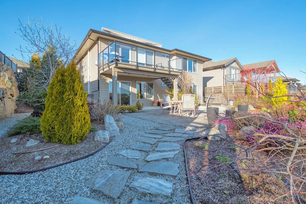 Huge ocean view from this lovely 3-bedroom home in upper West Sechelt, boasting level-entry main floor living with a full walk-out basement (easily suited). Featuring vaulted ceilings, an open-plan layout, a spacious kitchen with granite counters and an oversized island perfect for entertaining. The wide plank flooring and gas fireplaces in both the living and family rooms create a warm, inviting atmosphere. Enjoy breathtaking panoramic views from Davis Bay to the Trail Islands from your oversized sundeck, primary bedroom, family rooms and kitchen. Highlights include a gorgeous mature landscaped yard with irrigation, new heat pump & A/C on the main floor, a retractable awning for indoor-outdoor living. This meticulously cared for home is located just moments from the amenities of Sechelt.