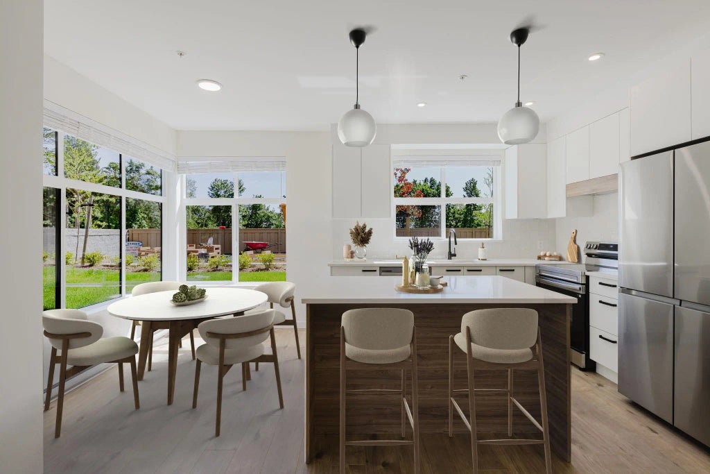 Welcome to Vista! This large 989 sq ft ground-level 2 bed+ den, 2 bath home offers open-concept living with 9' ceiling oversized windows, and beautiful courtyard views. Enjoy a stylish kitchen with quartz counters, stainless steel appliances, and ample storage. Relax on your private patio or enjoy Vista's top-tier amenities: a rooftop deck, fitn s centre, kids' play zone, and lounge. Includes secure underground parking. Close to parks, trails, shopping, and more! Move in ready!