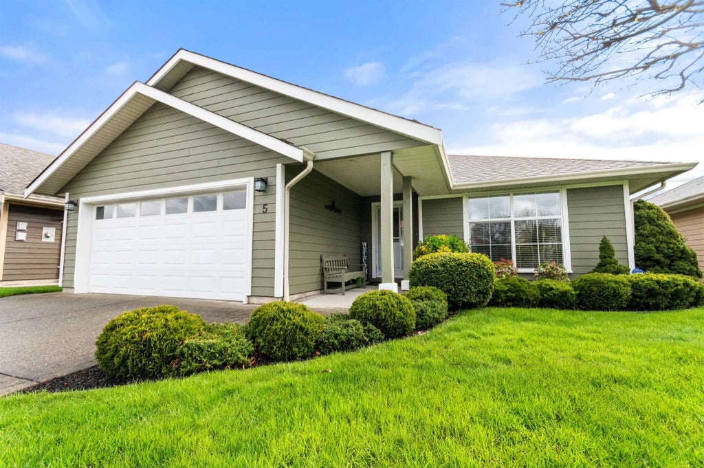 Welcome home to this IMMACULATE 2 bed, 2 bath ONE-LEVEL RANCHER in Agassiz's desirable Woodridge Place! A 55+ "Bareland Strata" option. Spacious floor plan; LvgRm / DinRm up front & Kitchen / FamRm at the back. UPDATES incl: Flooring throughout (vinyl plank through house, soft carpets in bdrms), Gas F/P stone surround. Lovely Kitchen w/ white cabinetry, centre island, S/S appliances. Large master w/ walk-in & 3pc ensuite. Fenced backyard has total privacy, a fully covered patio, and VIEWS of Mt. Cheam! CENTRAL A/C. Hardi siding, double garage. RV parking is available ($10/mo.), and LOW STRATA FEES are $105/month includes lawn care, garbage pick-up and snow removal. Convenient central location; walk to all Agassiz has to offer. Hang your heart & come and see why you'll love living here!