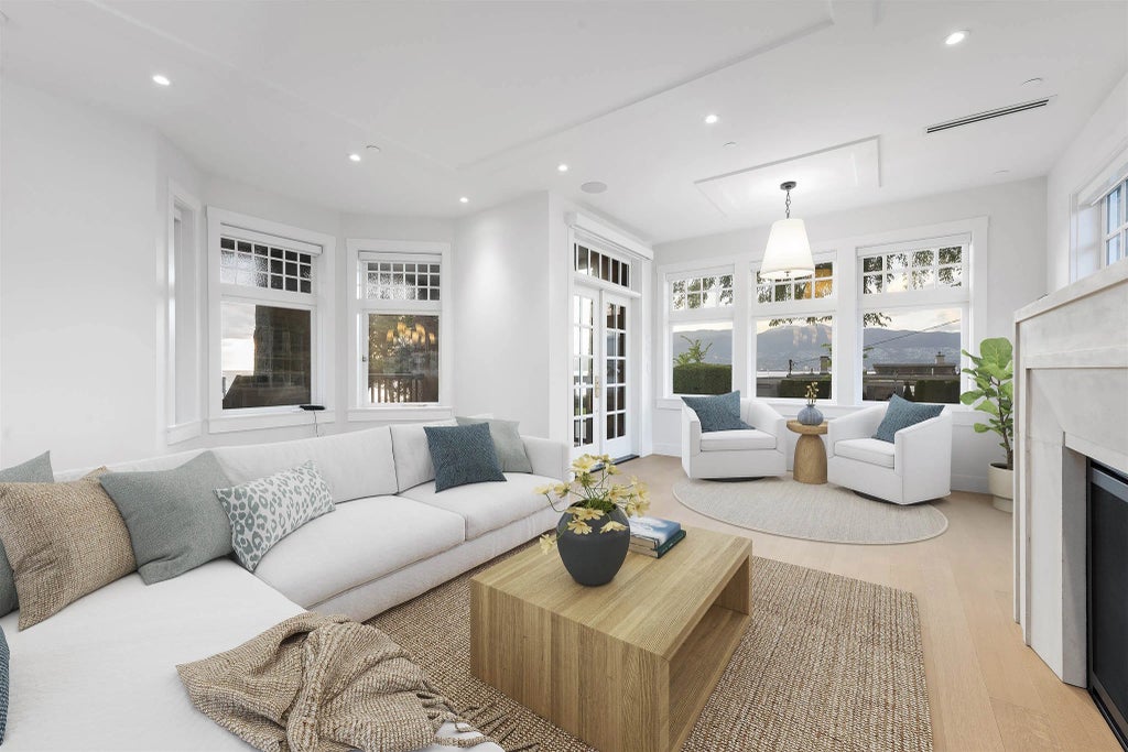 BRAND NEW HOME in the heart of Kitsilano on Lower Point Grey Road. The Cates Residence is a heritage masterpiece fully rebuilt with all the character of a Queen Anne Revival, but with the peace of mind of a new home, including a 2-5-10 year warranty. Gourmet kitchen, open concept living and dining room, spiral staircase, floor to ceiling windows to take advantage of the stunning views to the north. Wolf and subzero appliances, air conditioning, infloor heat throughout. Control AV, surround sound and security, outdoor heaters. All this on prestigious Lower Point Grey Road. GST PAID.