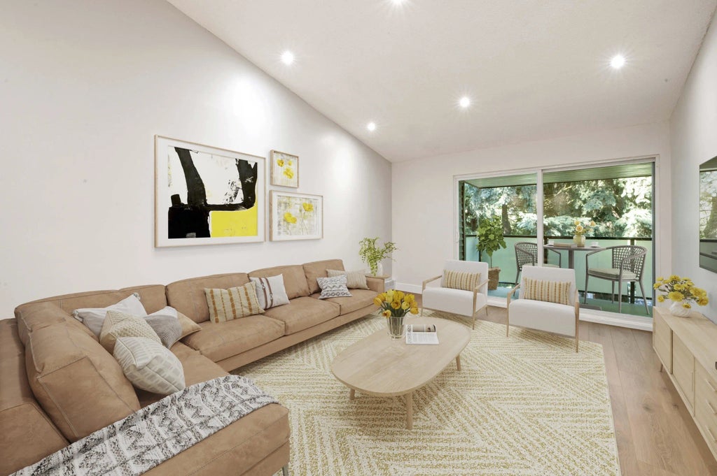 WOW! Stunning corner penthouse at tranquil Bakerview Place! Spacious 2-bed, 1-bath condo features a modern renovation & views to green belt w lrg deck. Peace of mind w/ fully retrofitted building envelope in 2021, including new windows, siding, balconies, & railings. Inside, find vaulted ceilings, updated lighting fixtures, new laminate flooring, fresh paint, elegant kitchen & bath, modern appliances, new A/C unit. The unit inclds separate laundry room, heat & hot water covered in maintenance fee. A bright, stylish home, super clean, move-in ready, great for owner-occupier, investors. 2 parking stalls & 1 storage locker. Rentals allwd, pets allwd w restrictions. Central near Mill Lake, Hospital, shopping, recreation, restaurants & schools. Have your realtor book a showing soon!