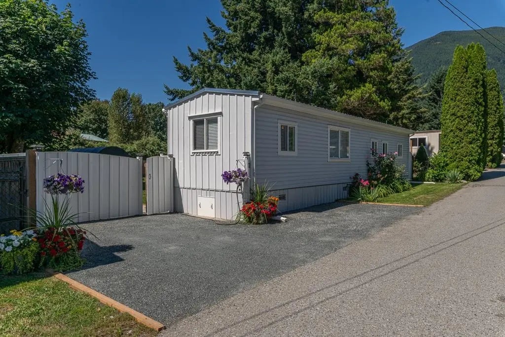 Fully renovated 3-bed, 1-bath home on a 6,500 sq. ft. fenced lot! New kitchen with faux marble counters, & stainless appliances. Fresh paint, new flooring & lighting throughout Relax or entertain on the back deck overlooking the private yard, complete with a storage shed for all your tools and toys. Surrounded by nature with endless opportunities for hiking, skiing, fishing & golfing. Only 25 mins from Mission — a scenic drive home to tranquility! Pad rental approx. $450/month. Move-in ready! Lots of parking for RV and boat. extras: Greenhouse, Generator propane outlet , bbq propane outlet, tons of storage, EV charging, new furnace, covered ATV or motorcycle parking, motion sensor security lighting etc