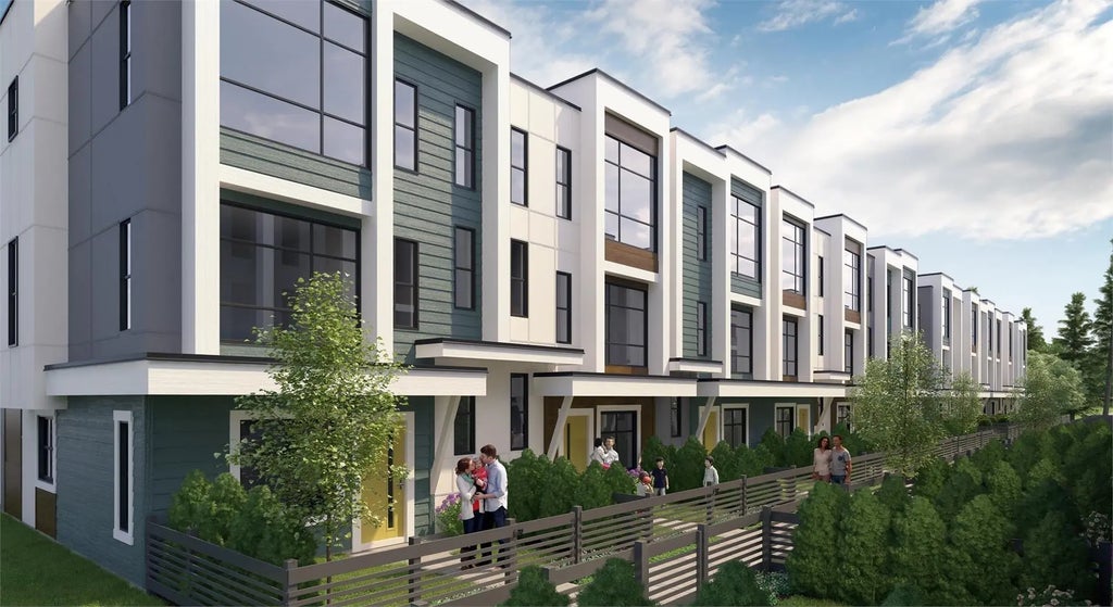 Brand New - Base 10 - 3 bed + den, 4 bath townhouse in Chilliwack’s sought-after Base 10! Over 1,500 sq.ft. of luxury living with high ceilings, large windows, A/C, high-end finishes, and modern exterior design. Gourmet-style kitchen, private balcony, front yard, double garage + double driveway. Bright, open layout in a prime location close to schools, parks, shopping, and highway access. Stylish, functional, and move-in ready!