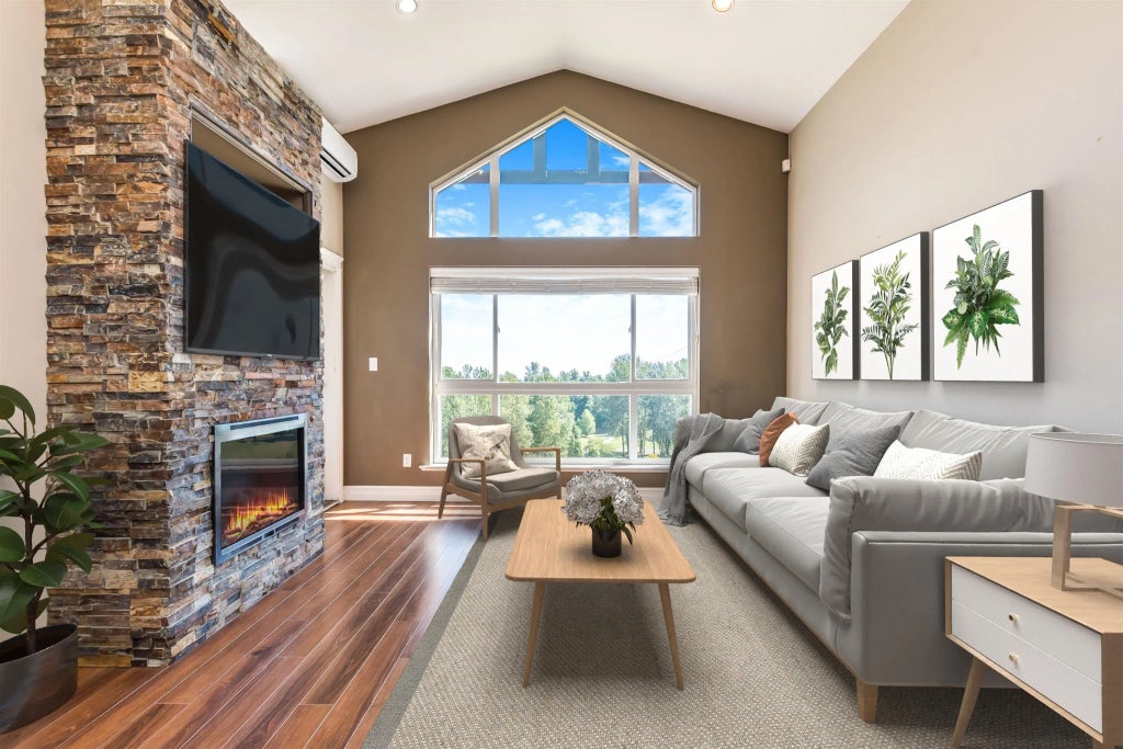 Executive luxury living in this gated penthouse suite- The Mews- in the heart of Mission! Featuring vaulted ceilings and picture frame windows, this home is filled with natural light and offers a bright, spacious layout with ceiling stone fireplace. Gourmet kitchen boasts granite countertops, s/s appliances, and elegant dark maple cabinetry. The king size primary bdrm includes a walk-in closet and spa like ensuite. A generous second 2nd bdrm, 2 parking, storage, and access to an exercise room & games lounge. THE VIEW! Enjoy unobstructed breathtaking views of Mt. Baker, Fraser River, Heritage Park, Matsqui flats, Grotto - over 15 acres of pristine landscape with hiking biking trails. Immaculately maintained and truly one of a kind! Some photos virtually staged. Show anytime.