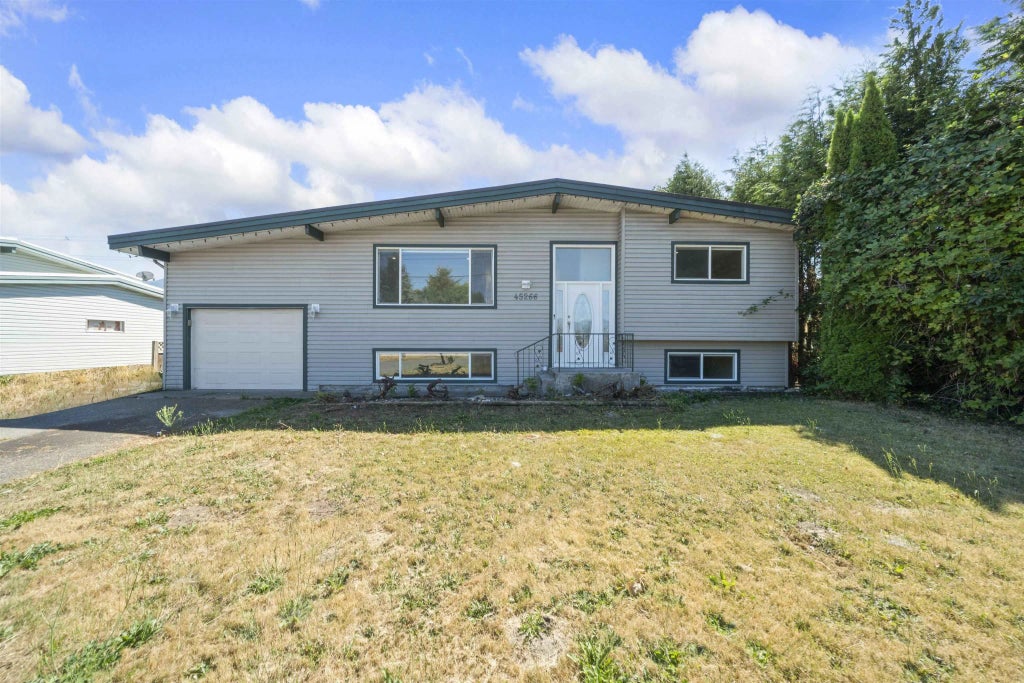 MOVE IN READY! Come see this beautifully updated 2 Storey home located in the highly desired Sardis area. It features 4 bedrooms and 2 bathrooms, 1,972 sq. ft. of living space on a 7,405 sq. ft. lot. Updates include new flooring, lights, paint, kitchen countertops and cabinets, plus refreshed bathrooms, making this home stylish and ready to live in. Large windows capture stunning mountain views, while the fully fenced backyard w/ storage shed offers privacy and backs onto a large park with no houses behind — perfect for kids, pets, and outdoor living. Ample parking easily accommodates multiple vehicles, RVs, or recreational toys. Centrally located near schools, parks, shopping, and recreation, this home is vacant with immediate possession available — Schedule your private viewing today!