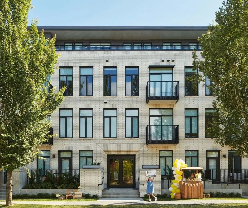 MOODY YARDS by MOSAIC. Spacious, 2-bed, 2-bath Hemlock Plan features open-concept floorplan, 9' ceilings & oversized windows let in natural light. Smart Kitchen, shaker cabinetry with quartz countertops. Spa-inspired bathrooms include frameless glass shower, deep soaker tub, & designer tiling! Enjoy a large covered 138 sqft balcony & access to 36,000 sqft. of outdoor amenities & a co-work studio. Perfectly situated steps from Rocky Point Park, Brewer's Row, SkyTrain, and trails. North facing mountain views. Estimated Completion fall/winter 2025. *WHAT SETS US APART: Quiet North facing view away form the train tracks on the south! Top floor with Skylight (no noisey neighbours above)! Rich Navy Color Scheme! Perfect distance away from the elevator but also not too far! 1 Parking & 1 Storage!