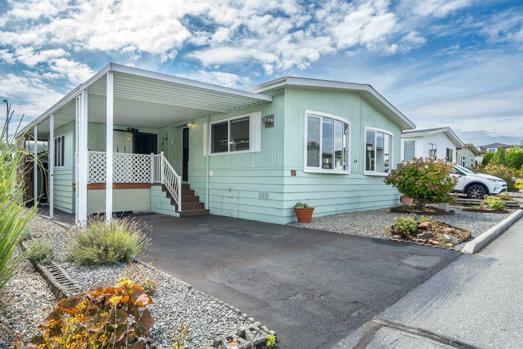 Welcome to Cherry Brook Park! This beautifully maintained 2 bed & den, 2 bath double-wide manufactured home offers 1,440 sqft of comfortable living on your own lot. Thoughtfully updated, it features a spacious ensuite w/ walk-in shower, cozy freestanding natural gas fireplace, newer windows, updated flooring, kitchen counters & backsplash, closet organizers, R/I vacuum, & a large openable kitchen skylight. Enjoy the detached workshop & expansive south-facing covered patio—perfect for relaxing or entertaining. With 2 parking spots right outside your door and proximity to Hwy 99, the US border, hospital, shopping, and White Rock Beach, convenience is at your doorstep. Adult-oriented 55+ community with low strata fees of $200/month.