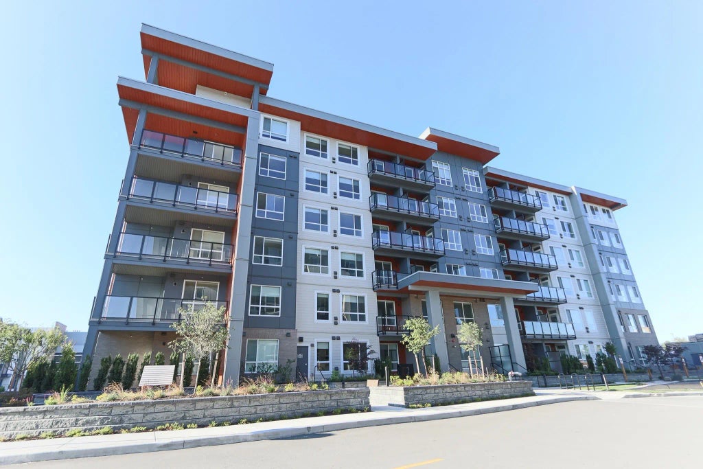 Top-Floor Corner 3-Bed at Highstreet Village! This brand-new 5th-floor corner unit offers 3 bed/2 full baths in Abbotsford’s most exciting new community. Bright and modern with windows wrapping around the open living and kitchen area, it features stainless steel appliances, a gas stove, touchscreen fridge, quartz countertops, and a large island with sink—perfect for cooking and entertaining. Wide-plank floors add style, while the functional layout provides excellent bedroom separation for privacy. Step out to your covered balcony for fresh air and views, and enjoy added convenience with parking, storage, and access to great amenities including a gym and party room. Located just steps from Highstreet Shopping Centre and dining, with quick access to Highway 1, this home is move-in ready!