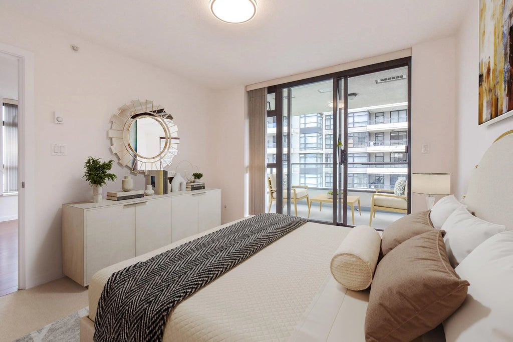 "Prado" Rarely available 1 bedroom plus den in most desirable neighborhood. Quality built by reputable builder- Appia/Bosa. Walking distance to Canada Line, Lansdowne Mall, Community Centre, Kwantlen & Trinity Western University. Bright East facing unit with functional floor plan overlooking beautiful quiet courtyard and mountain view. Well kept unit and recently updated with newer paint & lightings. Features like gourmet kitchen with quartz countertop, stainless steel appliances, laminate flooring in living, dining & kitchen areas. Amenities including recreation centre, exercise room, library, guest suite & concierge. All measurements are approx. Buyer to verify.