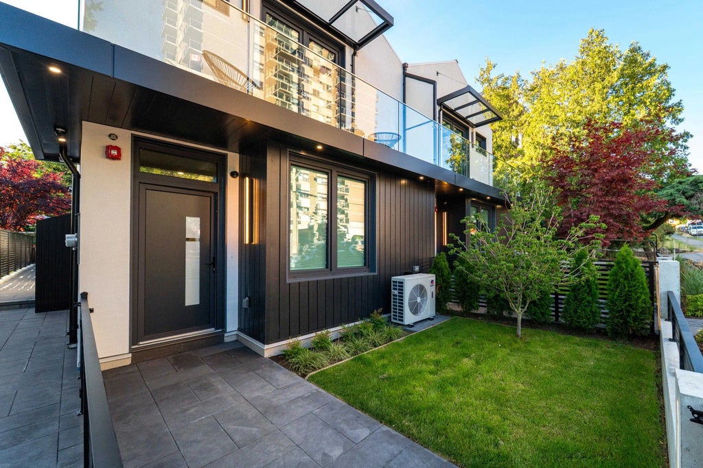 PASSIVE HOUSE. Modern Comfort. This BRAND-NEW upscale 3 bed 3 bath unit is built to the highest standards for energy efficiency, comfort, and air quality. Just steps from Moody Park, Royal City Centre & 6th Street. Designed for convenience and luxury, it offers a bright interior, thoughtful layout, quality craftsmanship, and high-end finishes. Open-concept kitchen ft. soft white cabinetry, minimalist hardware & s/s appliances. Living room with custom millwork & electric fireplace. Glass railings lead to 3 bedrooms with built-in closets and 2 baths ft. marble tile & soft oak cabinetry. Seamless indoor/outdoor living. Home equipped with A/C, 1 parking with EV outlet, 1 locker.