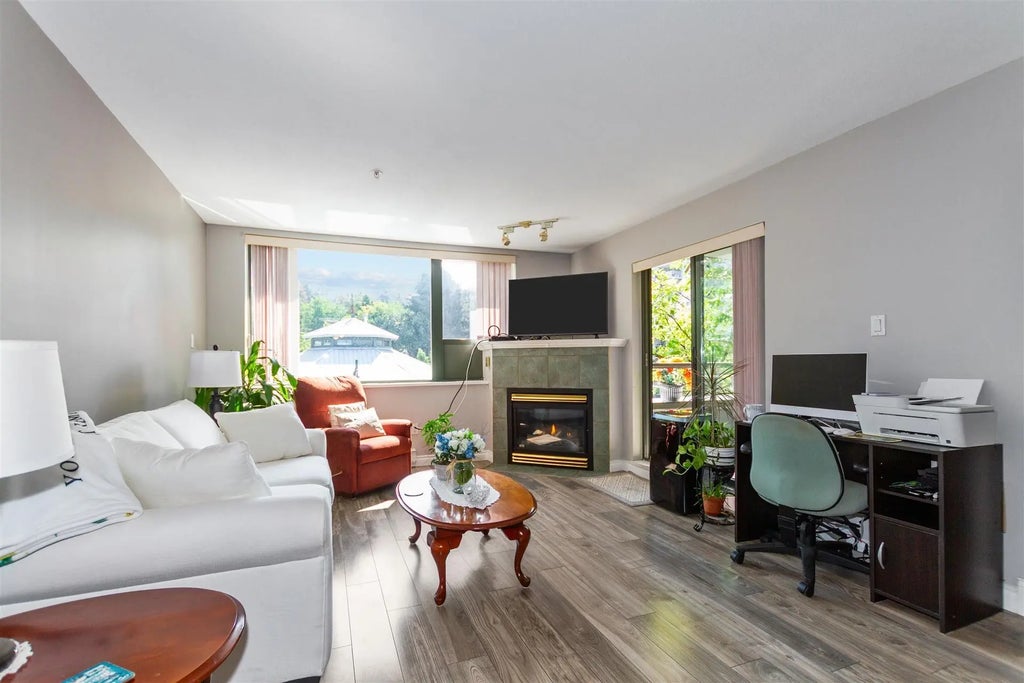 Welcome to Caledonia at Newport Village!This beautifully updated 2-bedroom, 2-bathroom home offers the perfect blend of comfort and convenience in the heart of desirable Newport Village.Featuring a spacious open floor plan, this unit is ideal for both relaxing and entertaining.Enjoy new stone countertops,stylish laminate flooring throughout and a cozy gas fireplace that adds warmth and charm to the living area. Step outside to your large private patio perfect for morning coffee while taking in views of vibrant Newport Village.Located just steps from shopping, restaurants, recreation facilities, and with easy access to transit and the SkyTrain, this home truly has it all.One parking and 1 storage locker included.