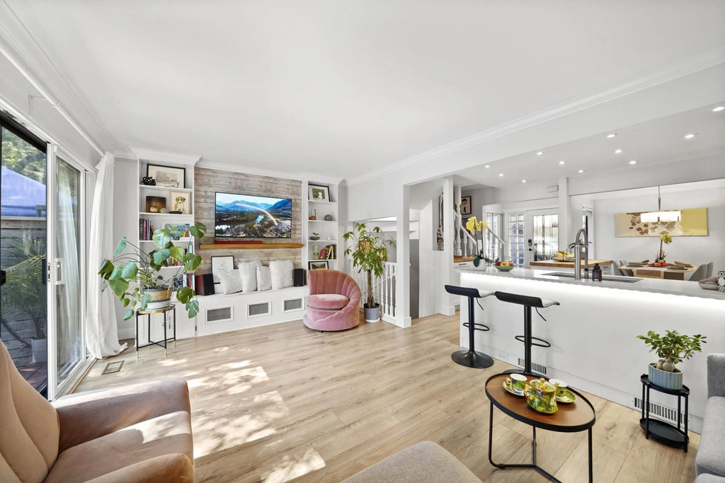 Welcome to your new home — where the comfort of a detached house meets low maintenance townhome with modern finishing! Nestled in a quiet, tree-lined community, this SE-facing home offers privacy, space & a seamless indoor-outdoor lifestyle w/ newly painted 325sqft patio. Enter from your front porch by the carport w/ overhead storage, or through your private gate. The open-concept chef’s kitchen features Caesarstone quartz counters, s/s appliances, gas stove, & a centre island perfect for entertaining or a growing family. Upstairs boasts 3 beds incl a spacious primary w/ custom closets & renovated bath. The lower level offers a family room, den/4th bedroom, laundry, & extra storage. Close to parks, schools, shops, rec centre, transit, & trails—this home is West Coast living at its best!