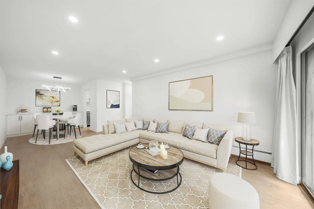 Fully updated 2-bedroom, 1.5-bathroom condo in Richmond's desirable Boyd Park. This modern, bright, and clean unit boasts BRAND-NEW stainless appliances, French door fridge, quartz counter-top, shaker cabinet with extra cabinet and wine fridge in the dining room, and a private balcony overlooking lush greenery, ensuring tranquility as it's situated toward the building's end. Residents enjoy access to exceptional amenities, including indoor and outdoor pools, a hot tub, sauna, gym, and clubhouse. Conveniently located, cross street from Seafair Shopping Centre, minutes walk to West Richmond Community Centre, public transit, Grauer Elementary and Hugh Boyd Secondary. Some photos are virtually staged.