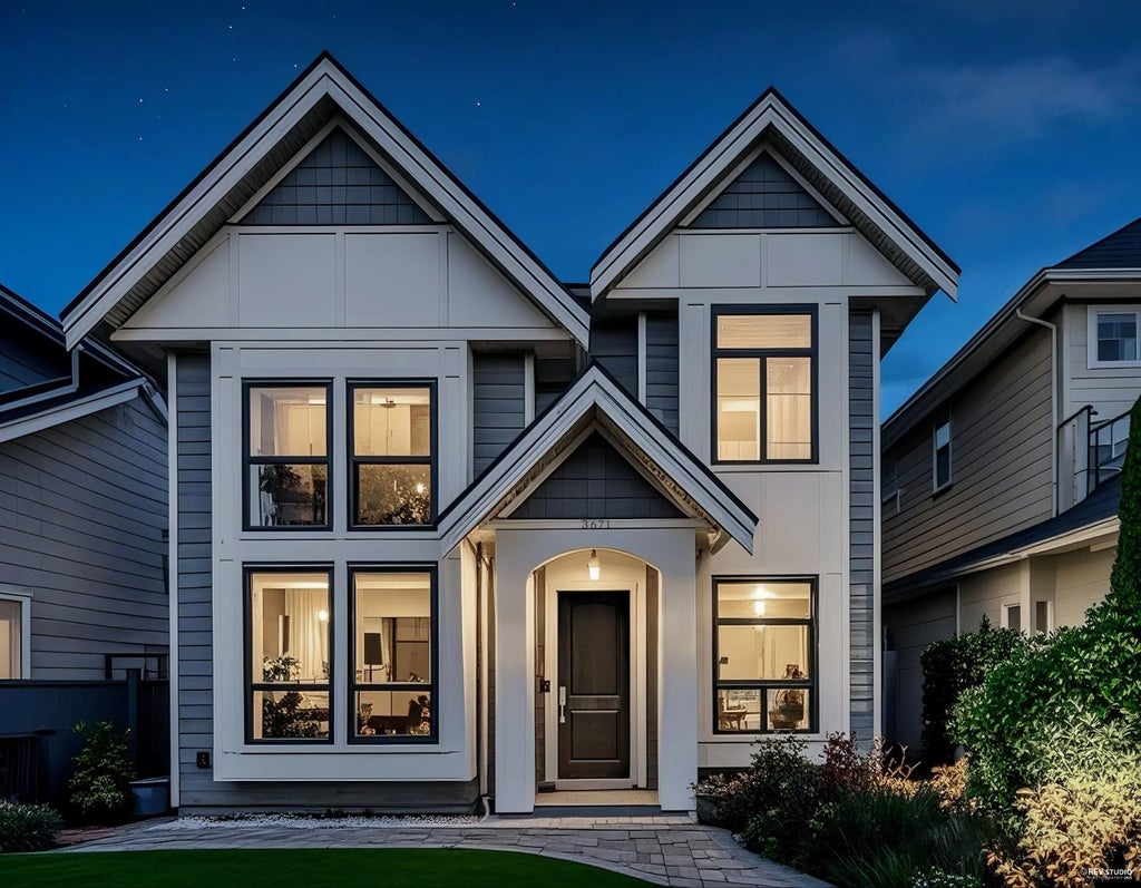 Located in the heart of Steveston Village, this south-facing 4-bed+den, 3.5-bath home offers over 2,300 sqft of luxury living. The living room features a soaring 16'4" ceiling, with 9-ft ceilings upstairs. Enjoy a spacious family room, gourmet kitchen with Bosch appliances, large island, and WOK/prep kitchen. All bedrooms are ensuited, including a Jack and Jill bathroom shared between two rooms. The primary suite boasts a private balcony and spa-like ensuite. Comfort features include A/C, radiant heat, HRV, and built-in security. Low-maintenance landscaping includes artificial turf in the sunny front yard and a private backyard with fireplace. Double garage with lane access. Steps to shops, Garry Point Park, the dyke, McMath Secondary, and Lord Byng Elementary. OPEN: OCT 4 SAT 2-4PM