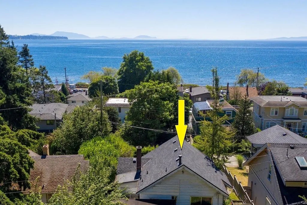 White Rock ocean view property in lovely location, quiet, no traffic street. Clean revenue bungalow or starter home, direct south facing on a 5,000 sqft lot. Frontage: 56 ft/Depth: 104/95 ft. Lane access behind home to detached garage. Easy beach access. Perfect location to build your dream home, this is row three ocean front. Simple access to walking trails through Ruth Johnson Park, just north of the home & Centennial Park above with playing fields, track, baseball diamond, fenced off-leash dog park, all-abilities playground, lacrosse box & tennis courts. Great revenue property. 3 bedroom/2 bath home: new roof 2016 & new h/e gas furnace 2021. Schools: Semiahmoo Secondary & Thrift Elementary.
