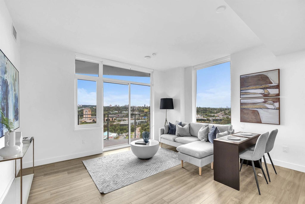 VIEW VIEW VIEW! Now available for rent is a stylish and cozy 1-bed, 1-bath condo in the heart of Brentwood at Alaska building, offering breathtaking city and ocean views. This 19th-floor home features a functional 580 sqft layout plus a 93 sqft balcony, soaring 9-foot ceilings, central air conditioning and heating, a spacious countertop, soft-close cabinetry, a gas cooktop, and secured parking with EV rough-in plus a storage locker. Building amenities include a fully equipped fitness centre, yoga and meditation studio, outdoor BBQ and firepit, games room, children’s playroom, and a social lounge with kitchen and terrace. Just steps to Brentwood SkyTrain and Amazing Brentwood Mall, with quick access to Metrotown & Downtown Vancouver. For showings, contact Nader Rafii at (604) 786-5884.
