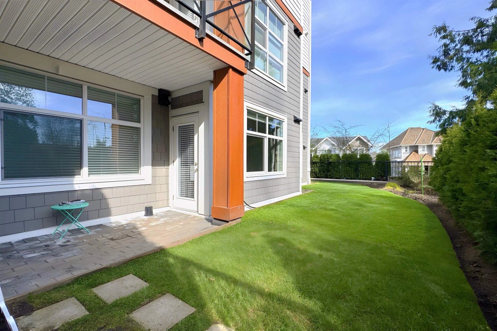 RARE FIND: Massive, privately gated, 550+ sqft fenced yard, perfect for kids, pets, entertaining and those wanting easy in/out private access! This stunning ground-level corner unit in prime South Surrey/White Rock offers 2 beds, 2 baths, and 1,011 sqft of open living with 9’ ceilings. Enjoy 2 patios, including direct access from the primary bedroom with ensuite and walk-in closet. Cozy up to a striking 23’ reclaimed barn wood feature wall with a 72” fireplace in a custom mantle. Kitchen features white nougat quartz counters, undermount sinks, and wide-plank laminate flooring. Bonus: 2 underground parking spots with EV outlet + private storage locker.