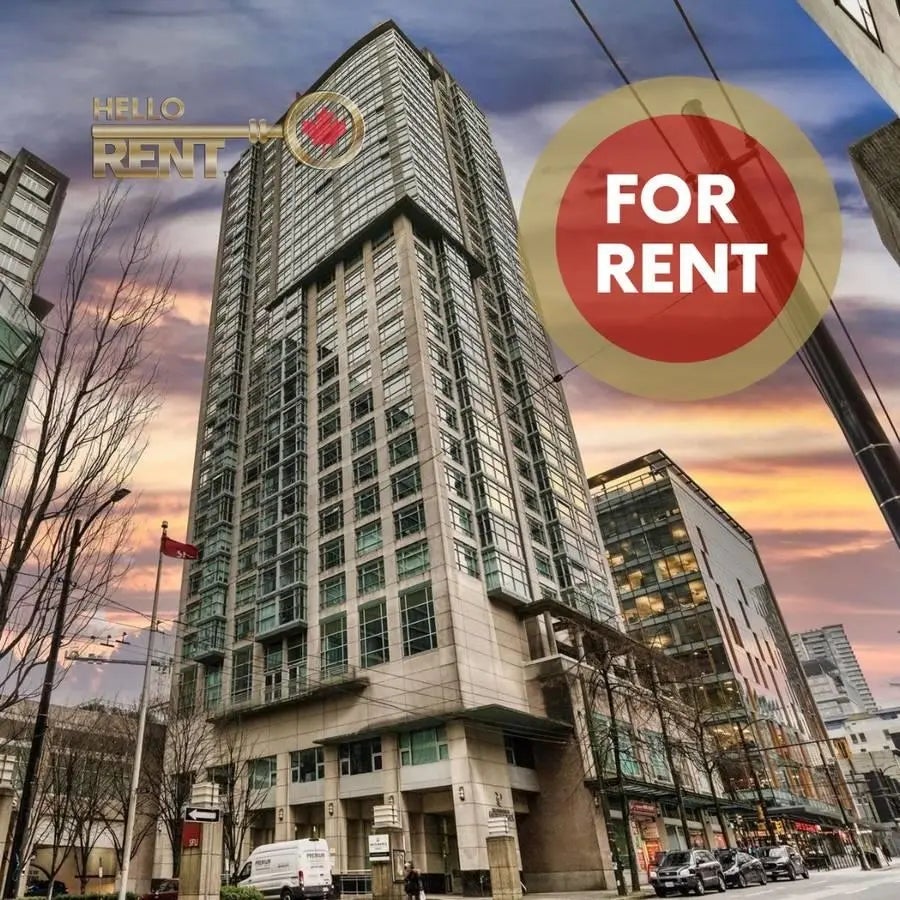 Avail Oct 1, 2025 Min 1 Year Term No Pets 1 Secure Parking & Storage Locker Incl 1BR+Flex+1BA Professionally Managed by Hello Rent Take in stunning city, mountain, and water views from the wall of windows wrapping around the kitchen and living area. Kitchen features stainless steel appliances and bar seating, connecting with an open floor plan to the living space. The views continue into the bedroom, with hardwood floors throughout the unit. Enjoy the conveniences of in-suite laundry. Amenities include 24/7 concierge, common BBQ area, fitness center, hot tub, sauna, and large heated lap pool. Located Downtown Vancouver near incredible dining, shopping, BC Place, Rogers Arena, Waterfront Centre, and the Inner Harbour. Tenant Insurance mandatory at move-in. Move-In Fee $150 Paid to LMS 2371.