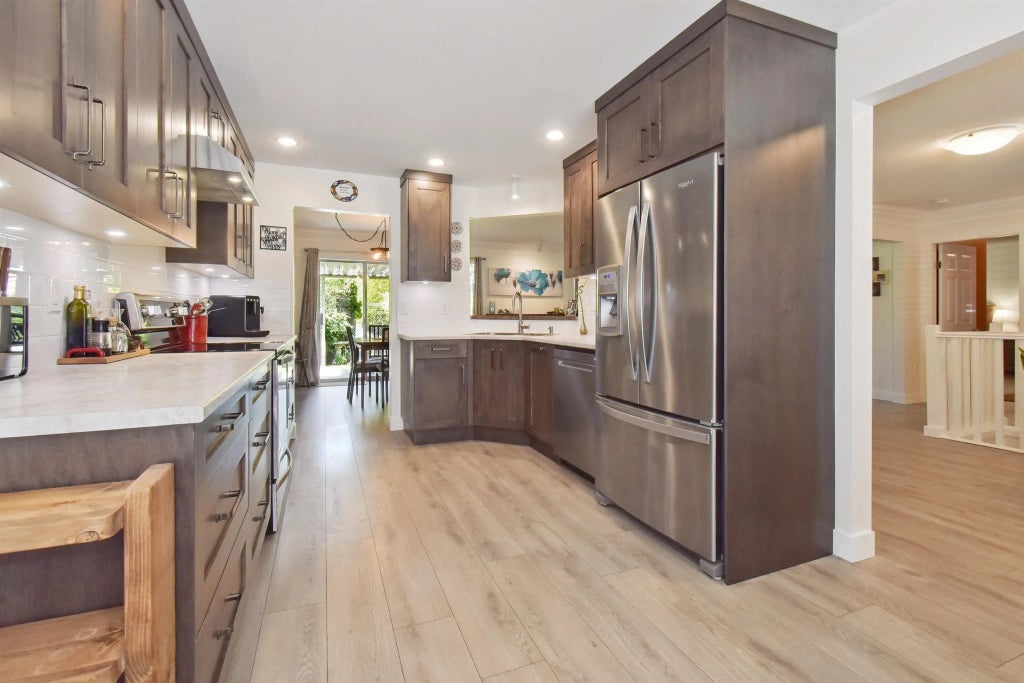 Stylish, Renovated 2617 SqFt Home in Prime Abbotsford Location! This beautiful home seamlessly blends modern living with incredible natural surroundings. With a standalone private entrance and attached garage, this home offers the feel of a detached house. Inside, the open-concept is bathed in natural light, creating a bright and welcoming atmosphere. The new kitchen is both stylish and functional, featuring SS appliances, ample storage, and sleek finishes. The Primary features a WI closet and full ensuite. No detail overlooked, NEW PEX plumbing, H.E. furnace, and AIR CON ensure comfort and peace of mind. 55+ In Abbotsford’s most walkable and desirable neighborhood, steps from Mill Lake, shopping, restaurants, groceries, transit, doctors, and more!