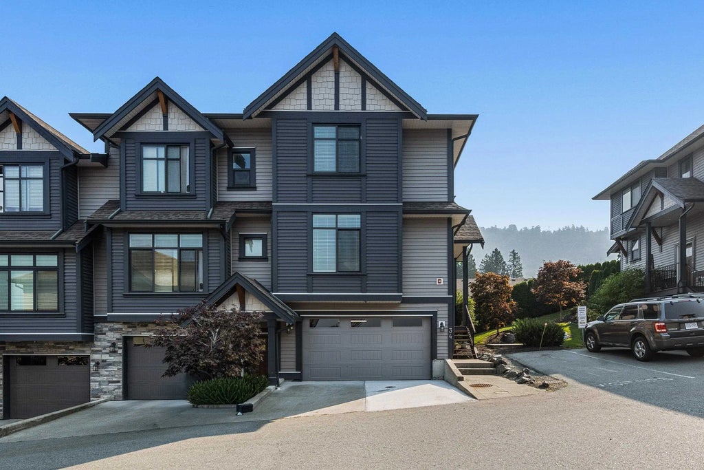 STYLISH END UNIT townhome featuring 3 beds, a versatile rec room, & a DBL GARAGE in THE RIDGE! Located at the base of PROMONTORY, this easily accessible newer complex is one of the areas most sought after developments. Well designed and well built, this 1592 sq ft home SHINES and has been kept in TIP TOP SHAPE. Fabulous location w/ visitor parking beside, a LARGE FENCED YARD for the kids/pets, and VALLEY VIEWS from the back patio. MODERN kitchen w/ SS, quartz, eating bar, & ample storage. Large living room w/ ship lap feature wall & beautiful views. 3 bdrms UP incl primary suite w/ walk-in & stunning ensuite washroom. DAYLIGHT WALKOUT BSMT w/ rec room (can be 4th bdrm) and backyard access. CENTRAL A/C included! Move in ready and fast possession is possible! Hurry- only one available!
