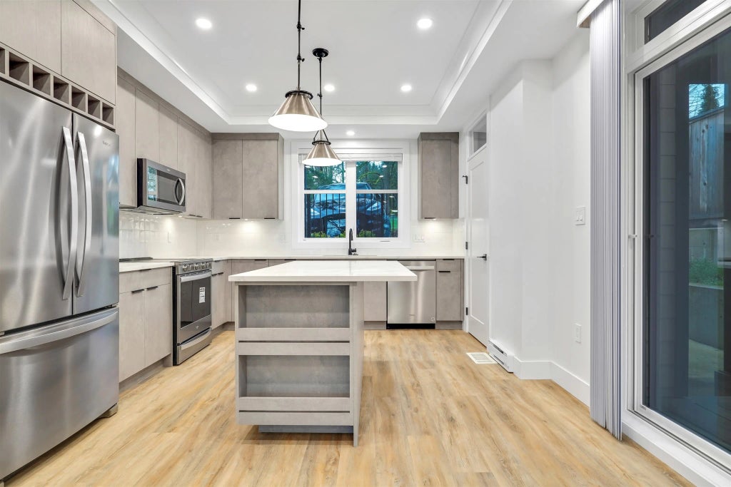 The best rowhome in town! This brand new corner home has two primary beds each with an ensuite, two additional beds, a den and two more baths. The main floor is an open concept with a spacious foyer, large windows, high ceilings, a modern living room with an elegant fireplace, fabulous powder bathroom for guests, entertainer's kitchen with s/s appliances and a garburator for added convenience. A cute deck with large sliding doors awaits you for you to have your morning coffee. Upstairs a large primary bedroom is attached a spa-like ensuite. Full size laundry, two additional bedrooms, and a spacious main bathroom are located upstairs with views of a serene park. The basement has a large flex space, a second primary bed and ensuite, perfect for a growing family! EV Ready and close to HWY1.