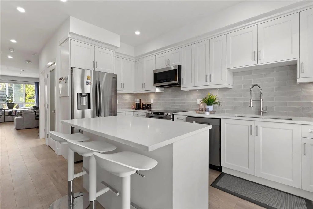 Your elevated lifestyle starts here! Welcome to ELEVATE in Langley! Bright & modern 2 bed (easily 3!) + den, 3 bath townhome offers over 1,500 sq ft of open-concept living plus a show-stopping 750sqft rooftop patio with stunning views of Mt. Baker! Main floor features 9' ceilings, oversized windows, wide-plank flooring, and a beautiful electric fireplace. The sleek kitchen boasts quartz counters, stainless steel appliances, an expansive island and room for an eating area or home/work bar perhaps? Two king-sized bedrooms upstairs; one with three closets! Versatile room on the entry level is perfect for a home office/den or gym - floor to ceiling glass doors separate from the garage with extra storage. Walk to parks, schools, shopping & transit. Pet & rental friendly! A rare find!