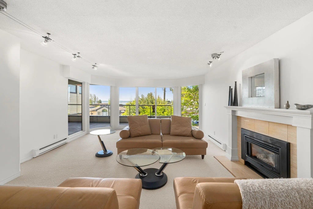 This spacious 2-bed home offers a spectacular ocean view - all on one level. It boasts 8-foot ceilings, a fireplace, and a custom house-sized kitchen perfect for entertaining, complete with stainless steel appliances. The south-facing unit features a large primary bedroom that easily fits a king-size bed and includes a full ensuite bathroom. Enjoy a spacious sun-drenched 177 sq ft balcony, perfect for summer nights and BBQs. In-suite laundry, secure parking, and a large bike-sized storage locker are included. With no stairs and easy street access (wheelchair-friendly), walks to Dundarave Village are a breeze. Excellent schools, transit, shops, eateries, parks, and West Van’s popular beach and seawall. One cat allowed — sorry, no dogs. Freshly painted and new carpets, this won’t last long!
