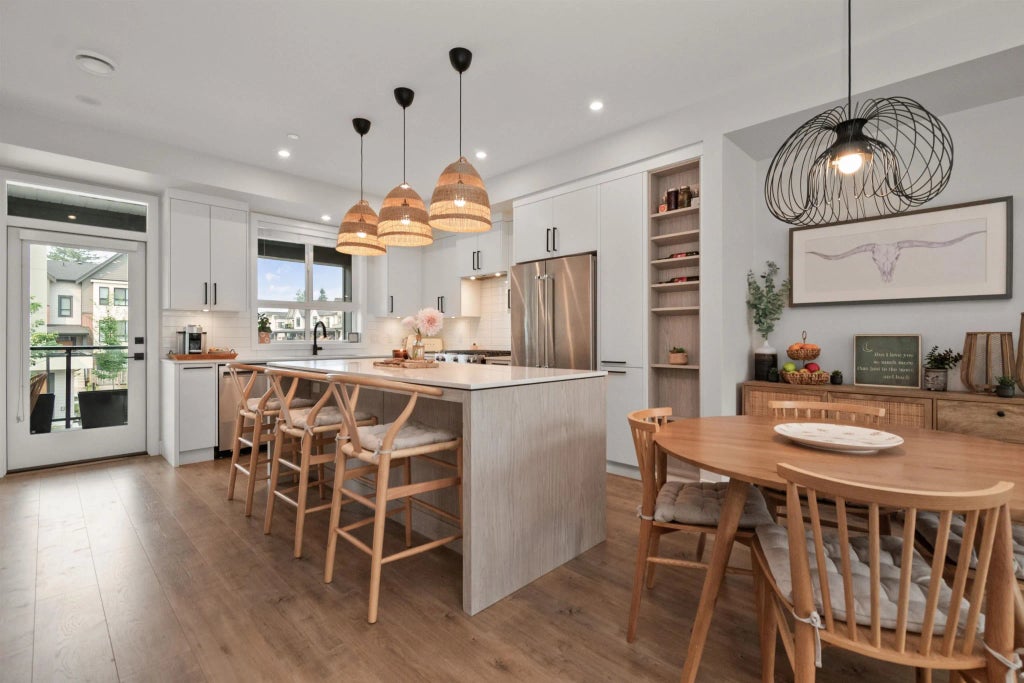 PRIME SARDIS LOCATION! Welcome to The Acadia— A stunning 4 bed, 4 bath townhome built in 2021, steps to Garrison Crossing, Vedder River Trail, shops, and parks. This bright, modern home features a chef’s kitchen with quartz counters, oversized island, gas range, and custom arches, complemented by new pendant lighting throughout. Upstairs offers 3 bedrooms, plus a thoughtfully designed laundry room with custom shelving for added function and style. The lower level is ideal for a home office/ business or guest space with custom arch & shelving. Enjoy year-round entertaining on the covered patio with BBQ hookup, along with the convenience of a double garage. Stylish upgrades, modern design, and a prime Sardis lifestyle—all in one. Located in Stitó:s Lá:lém K-8 catchment and minutes from UFV.