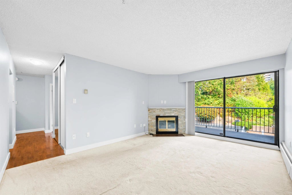 Welcome to your well maintained 2 bedroom and 1 bathroom condo overlooking a beautiful tree-line cul-de-sac. With gorgeous, freshly painted grey walls and espresso laminate flooring, this colour palette exudes calm and cozy. Enjoy your covered deck, directly off your living room, offering privacy and greenery. This building comes with incredible amenities, including; in-suite laundry, a gym, indoor pool, hot tub, workshop and club house. Walk the gardens in your massive courtyard, set amongst trees and lush green grass. Lougheed mall, skytrain, shopping all within walking distance. 1 underground parking (B89) and 2 storage lockers (17 & Hall G) as a bonus, with one located right outside your front door. Book a showing today before you miss out!