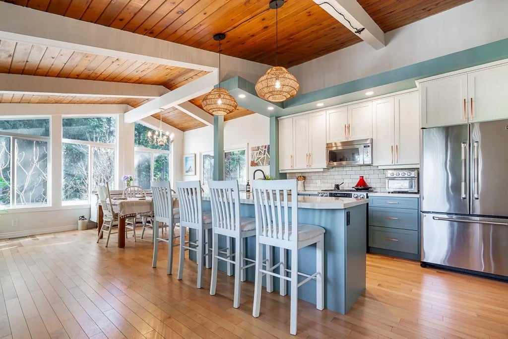 Priced well below assessed value and move in ready! Discover this beautifully updated 4 Bed + office, 2.5 bath home, tucked away on a peaceful no-through road & backing onto a quiet laneway. Enjoy TOTAL privacy in your expansive, treed, S facing yard, perfect for relaxation & entertaining. Vaulted ceilings, oak floors, and large windows fill the home with natural light, offering peaceful mountain views from the living room & kitchen. Just a 10-minute walk to SkyTrain & 15 minutes to the village. Live in comfort in this gorgeous family home for years to come. Easily suite the basement, or look forward to cashing in on the TOA 3 zoning down the road. Endless possibilities here! The huge downstairs bedroom is currently used as a rec/media room.