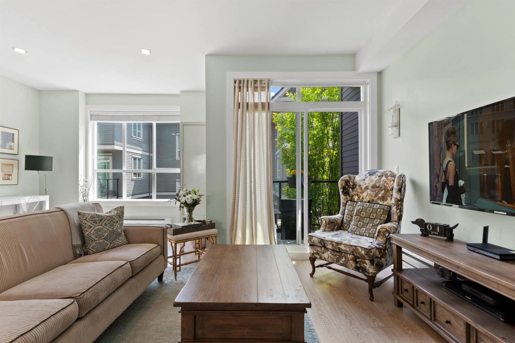 VILLAGE GARDENS, a bright CORNER 2 bed 2.5 bath townhome residence w/ North exposure, tucked away on the quiet side of complex in the heart of Ladner Village. This 1312 sq ft home exudes comfort & elegance. Main floor features an open floor plan with 9 ft ceilings & oversized windows. The kitchen has a 9 ft quartz island for entertaining, gas range stove & s/s appliances. The grand living room & flex complete this inviting space. The generously sized primary bdrm has a walk-in closet & an ensuite bathroom. Thoughtfully decorated throughout w/elegant wallpaper, custom entry stairs, custom entry closet & a stunning double car garage w/ custom flooring. This home checks the boxes from a tasteful interior to a dream garage for enthusiasts. Steps away from shops, restaurants and Ladner market.