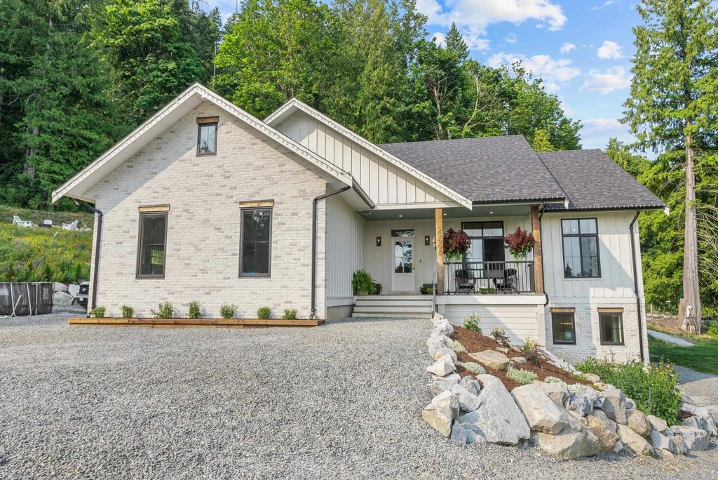 Let there be light! Stunning modern farmhouse with a balance of country and elegance! This 2yr old custom built rancher boasts over 3000 sqft of living space and includes a fully finished walkout basement. Main living features 10ft ceilings, hardwood floors and is accented with beautiful custom finishes. Spacious kitchen offers plenty of work space, gas range, stone counters, loads of storage and large center island. Primary bedroom includes an elevated ensuite with heated floors, rain head shower and walkin closet. Large covered back deck feat. cedar ceilings & natural gas. 2 acres of pristine property where the kids can roam. Room for pets & a hobby farm. Peekaboo mountain views! Build a shop or rezone for a coach house. Less than 10 min. from any schools, parks, recreation & shopping.