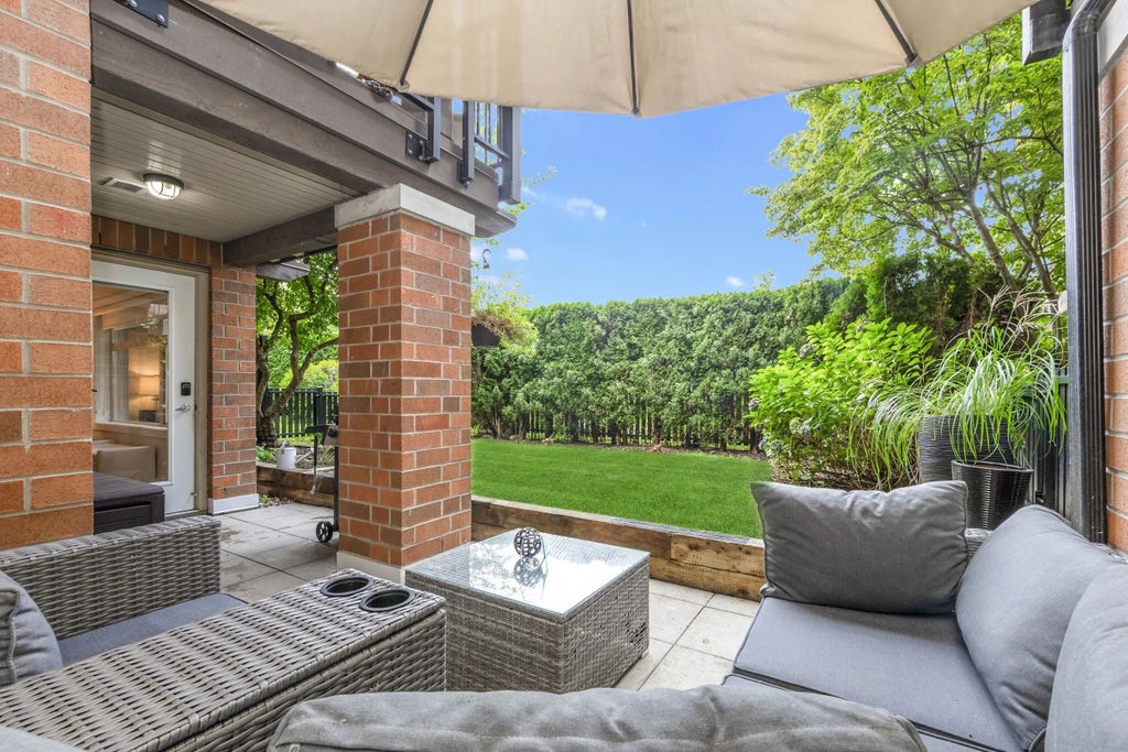 TOWNHOUSE STYLE – PRIVATE FENCED BACKYARD & STUNNING PATIO AREA(177 sq.ft.) UPSCALE RENOVATIONS THROUGHOUT! KEY FEATURES: OPEN PLAN LIVING & DINING RMS – FEATURE WALL INCLDS DESIGNER FIREPLACE. KITCHEN:1. granite counters w/waterfall end 2.tile backsplash 3. SS deep sink 4. touchless faucet 5. new appliances 6. cabinetry +SPA INPIRED BATHROOM RENOS:cabinetry/toilets/faucets/tiled flrs (3pce main-new tiled shower stall/ 5 PCE. ENSUITE: dble sink vanity, relax in the soaker tub. MASTER BDRM: massive -fits a king bd/custom walk-in closet w/built-in organizers. 2nd bdrm generous in size. NEW:Flooring/designer paint/drs/blinds/mouldings/luminous switches ++. 2 pkg & locker. BEAUTIFUL TRAILS/INLET/OCEAN/CANOE CLUB W/AMENITIES GALORE/GUEST SUITE. EXTENSIVE UPGRADE LIST. OH/Sat Oct 11th 1 -3pm