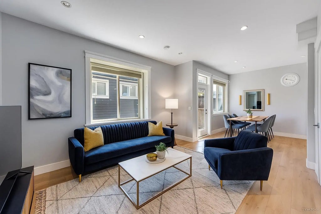 Fall in love with this modern, stylish and well-kept 3BR/3BA, half DUPLEX in Burnaby Central close to BCIT! Nestled in a quiet residential neighborhood, it boasts an open living area w/ a featured wall & gas fireplace, gourmet kitchen w/ gas cooktop, German laminate flooring, gas-fuelled efficient RADIANT heat, security system & HRV ventilation. Windows on all sides, bright and airy. Back half of the house. Relax in your south-facing private fenced-in backyard, complete with a detached garage & extra parking for flexible use. Steps from Skytrain, BCIT, parks, Brentwood Mall & Highway 1, this beautiful home offers unmatched convenience. AC can be easily installed. NO strata fees or strata rules! Douglas Rd Elementary & Burnaby Central Secondary school catchment. Open Sat/Sep 13, 2-4p